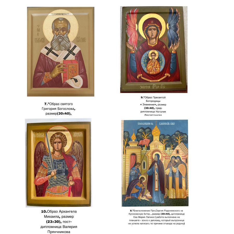 На защите были предъявлены репродукции икон, выбранных в качестве образцов, с которых дипломника сделали списки своих работ.